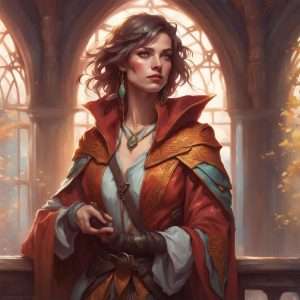 Her Charisma (Cha) starts at 12, all other stats begin at 8. She gets +1 Int from the character to her left which would be the previous character I created, the Self Taught Mage.