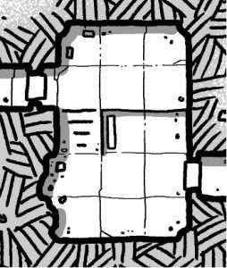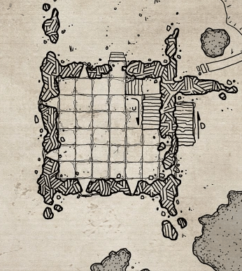 The companions walk down a short 20 foot long corridor which leads to a small open room which is also empty although there are three pillars, one in each corner, each pillar has arcane ruins etched into them.