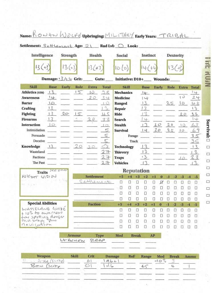 And this is our finished character, Ronan Wolfe, ready to join Rosa Garcia and Snipe on a journey in to the wasteland.