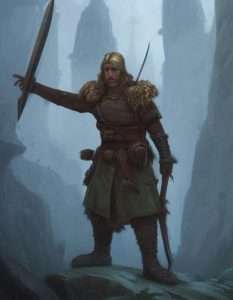 There is nothing of value to be found on the dead and there are raised voices and a clatter of armour coming towards them. Tilly grabs a longsword from one of the fallen and the party make haste to leave the small town. Karintha marches quickly beside Tilly and asks her, “Why did that spirit lead us to this place and put us in such danger, then disappear”?